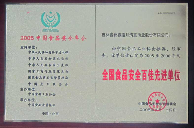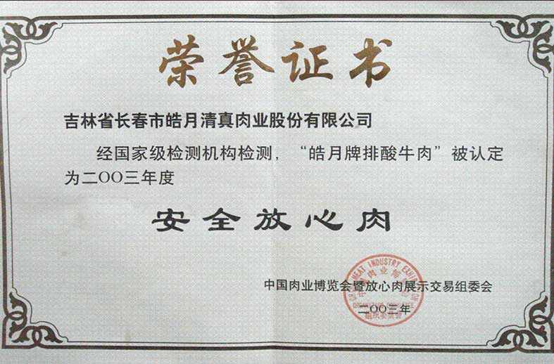 中國肉博會(huì)皓月牌排酸牛肉2003年度安全放心肉