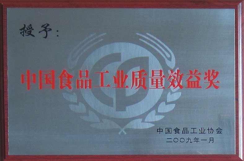 中國食品工業(yè)質(zhì)量效益獎(jiǎng)