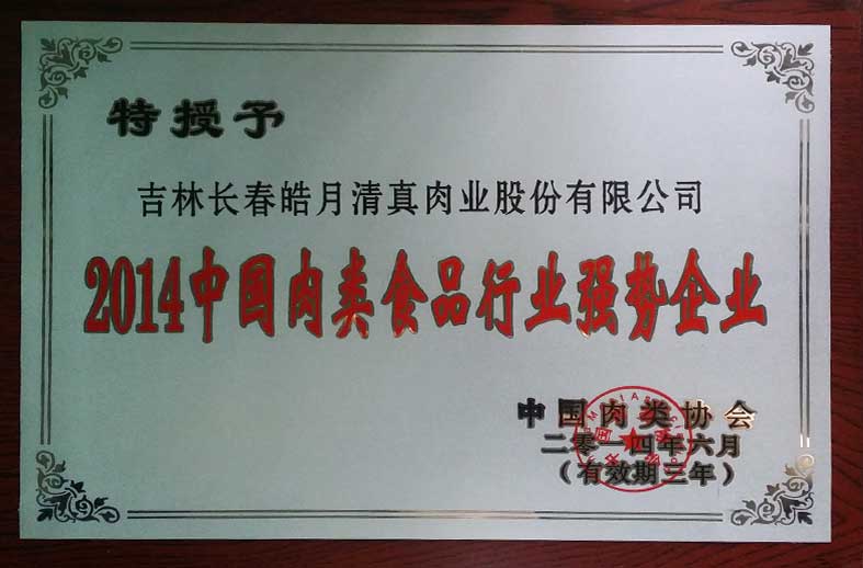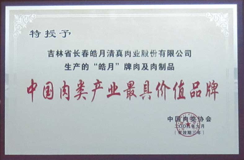 中國肉類協(xié)皓月牌肉及肉制品中國肉類產(chǎn)業(yè)最具價(jià)值品牌