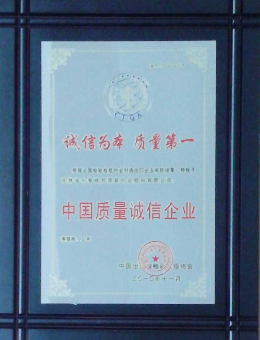 中國出入境檢驗(yàn)檢疫協(xié)會(huì)中國質(zhì)量誠信企業(yè)