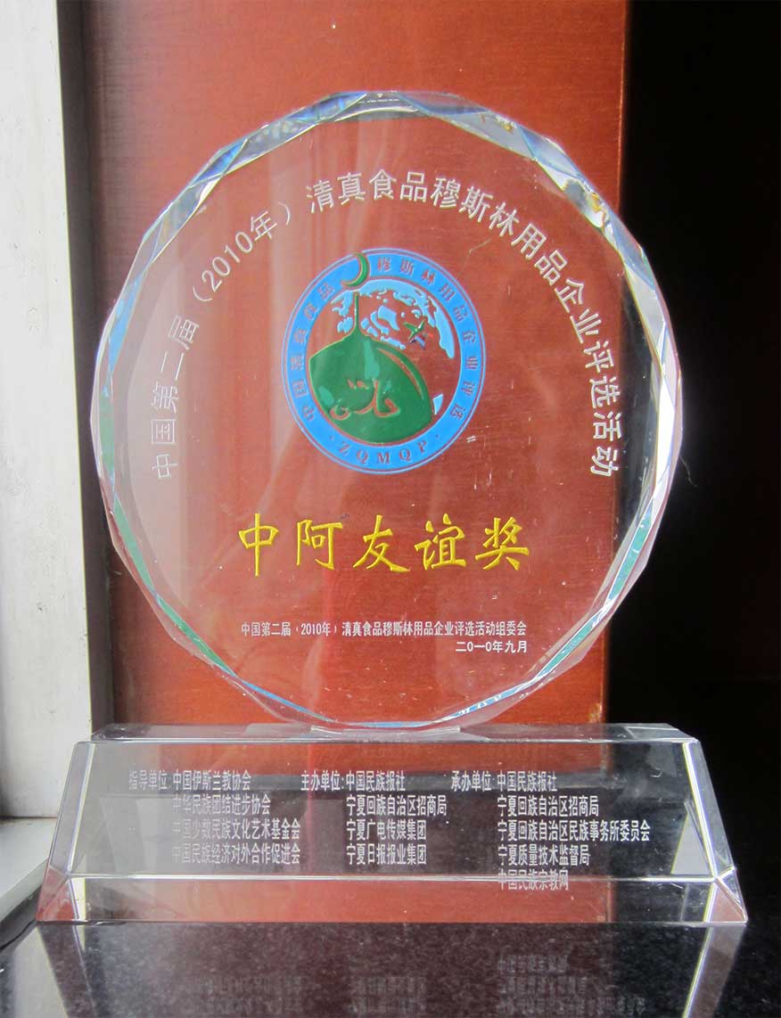 中國第二屆(2010年)清真食品用品企業(yè)評(píng)選活動(dòng)中阿友誼獎(jiǎng)