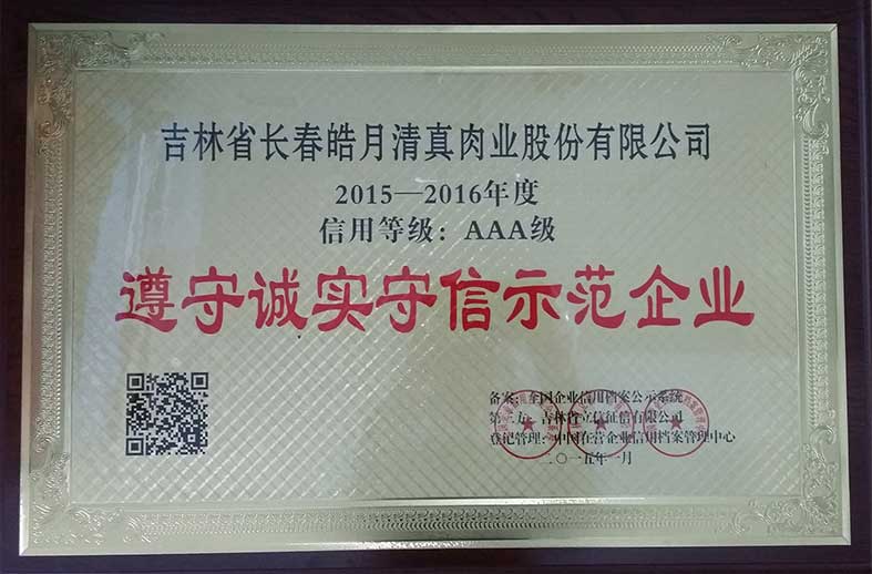 2015-2016年度(信用等級(jí):AAA)遵守誠實(shí)守信示范企業(yè)