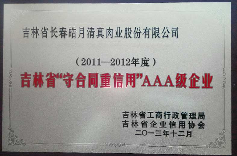 吉林省“守合同重信用”AAA級(jí)企業(yè)